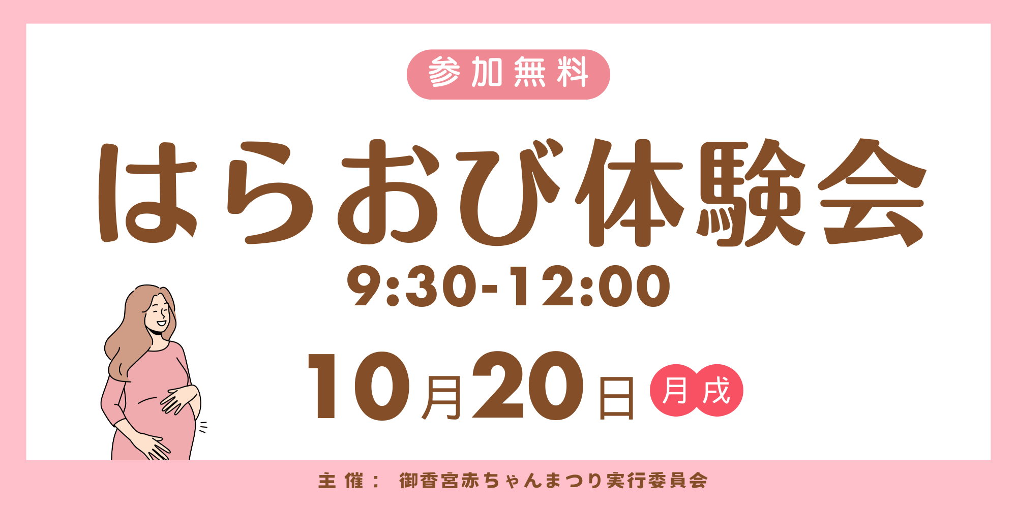安産祈願で授かることのできる『はらおび』の無料体験会です。