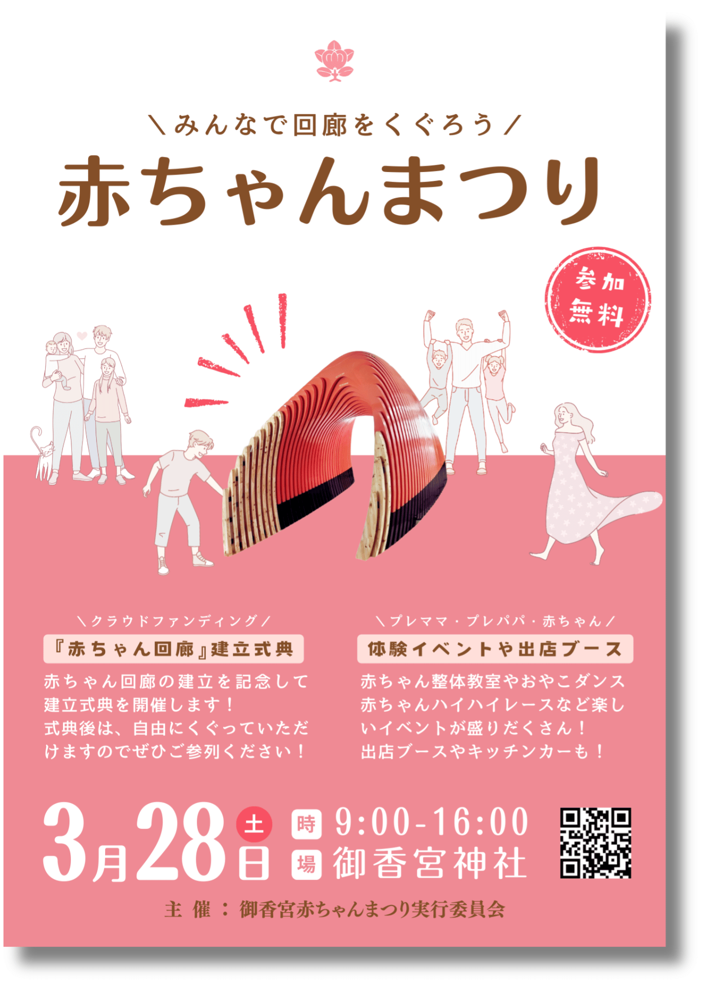 式典後は、どなたでも自由に回廊をくぐっていただけます。妊娠・出産への感謝と、お子さまの健やかな未来を願うひとときとして、ぜひご参列ください。